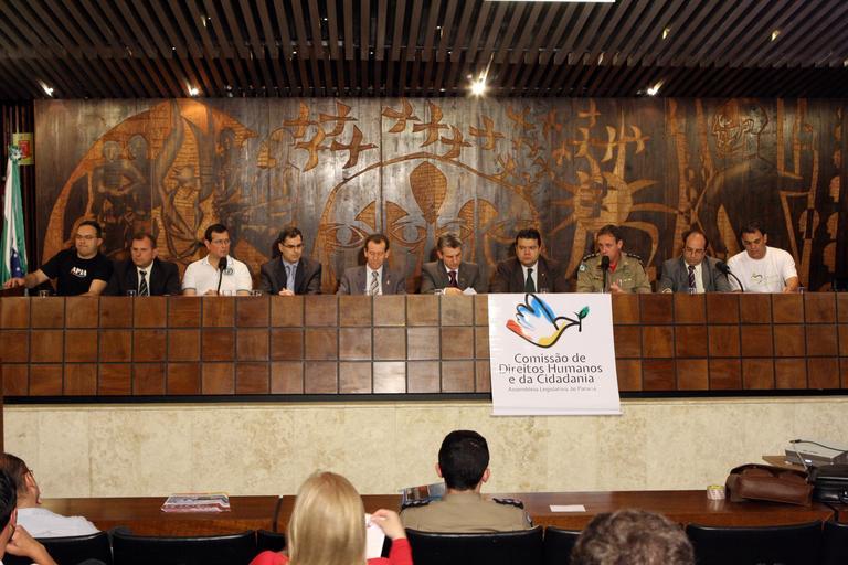 Keywords: Audiência pública realizada pela Comissão de Direitos Humanos e Cidadania da Assembleia Legislativa nesta quinta-feira (27) para debater as condições de trabalho dos profissionais do setor de segurança pública no Paraná. O evento contou com a participação de representantes das polícias civil e militar, de representantes dos agentes penitenciários e da Secretaria de Estado da Segurança Pública. Foto: Nani Gois/Alep (crédito obrigatório)