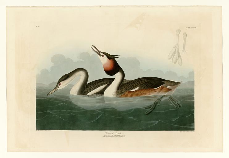 Keywords: 292 Crested Grebe.jpg LargeImage 291_Herring_Gull jpg 293_Large_billed_Puffin jpg Plate 292 of Birds of America by John James Audubon depicting Crested Grebe http //images library pitt edu/cgi-bin/i/image/image-idx view entry;cc audimg;entryid x-aud0292 University of Pittsburgh 1827-1838 creator John James Audubon PD-old-100 The Birds of America |