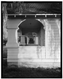 | Keywords: 2974 Misty Street - porch detail - Chemawa Indian School - Salem Oregon.jpg Chemawa Indian School 2974 Misty Street Salem Marion County Oregon Built 1923; demolished 1978 Former National Register of Historic Places listing 1977 photograph from the HABS ”Historic American Buildings Survey images of Oregon - ;Credits LOC card Frame with novelty siding on concrete foundation 32' three-bay front x 62' one-and-a-half stories gable roof with exposed purlins shed dormers three-bay entrance porch with squat columns on solid railing Built 1923; demolished 1978 4 ext photos 1977 Also see Chemawa Indian School OR-129 Card prepared 1979 Item Title Chemawa Indian School House 2974 Misty Street Salem Marion County OR Call Number HABS ORE 24-SAL 1J- Notes Survey number HABS OR-129-J DIGID http //hdl loc gov/loc pnp/hhh or0049 CARD OR0049 Library of Congress Steve Viale 1977-11 OR-129-J Historic American Buildings Survey photographs of the Chemawa Indian School Bungalows in Oregon ~ Former buildings in Oregon ~ Black and white photographs of Oregon Chemawa |