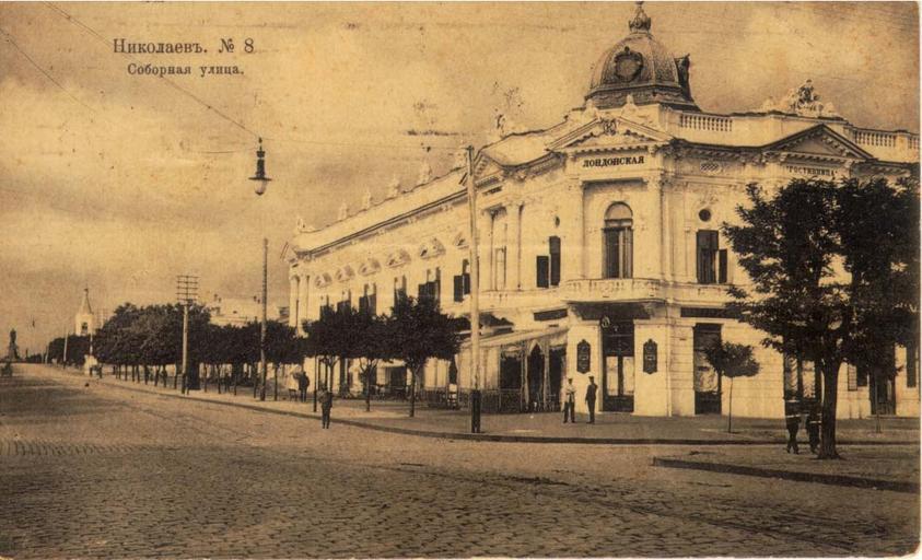 | Keywords: Николаевъ. Соборная улица (2).jpg ru « иколаевъ Собо ная улица» Лондонская гостиница unknown date http //www taxi-surprise org ua/page3 html Такси «Сю п из» unknown author Custom license marker 2012 01 14 PD-scan Uploaded with UploadWizard Postcards of Mykolaiv Radyanska Street Mykolaiv |