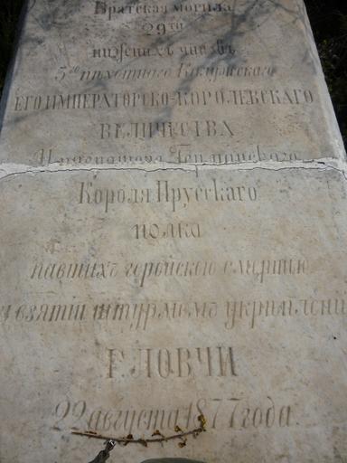 | Keywords: Надгробна плоча 2.JPG bg Паметник на 29 уски войници от 5-и пехотен Калужки полк загинали на 22 август 1877 г п и освобождението на Ловеч от османско иго own Bulldog4eto 08 04 2010 War memorials in Bulgaria Monuments and memorials in Lovech Mass graves in Bulgaria |