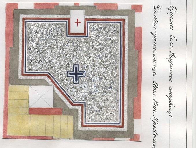 | Keywords: 2 мозаичный пол крипты.JPG ru г Пушкин Казанское кладбище Часовня-усыпальница Светлейших Князей Ю ьевских К ипта озаично-наливной пол План- еконст укция по езультатам аскопок Бумага аква ель к асным к естом обозначено место са кофага Князя- ладенца Бо иса Chapel of Yurjevsky 9 Се геева Елена 2007-11-07 г Пушкин Казанское кладбище Часовня-усыпальница Светлейших Князей Ю ьевских К ипта Chapel of Yourjevsky Tsarskoye Selo | ||||