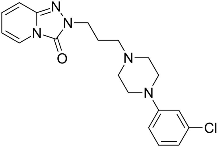 | Keywords: 2-(3-(4-(3-chlorophenyl)piperazin-1-yl)propyl)-(1,2,4)triazolo(4,3-a)pyridin-3(2H)-one 200.svg validSVG Structure of 2- 3-4- 3-chlorophenyl piperazin-1-ylpropyl -1 2 4triazolo4 3-apyridin-3 2H -one Struktur von 2- 3-4- 3-Chlorphenyl -1-piperazinylpropyl 1 2 4triazolo4 3-apyridin-3 2H -on Own 2014-03-13 Emeldir <span class signature-talk >talk</span> Chemical structure verified https //upload wikimedia org/wikipedia/commons/6/60/2- 283- 284- 283-chlorophenyl 29piperazin-1-yl 29propyl 29- 281 2C2 2C4 29triazolo 284 2C3-a 29pyridin-3 282H 29-one_200 svg 1S/C19H22ClN5O/c20-16-5-3-6-17 15-16 23-13-11-22 12-14-23 8-4-10-25-19 26 24-9-2-1-7-18 24 21-25/h1-3 5-7 9 15H 4 8 10-14H2 PHLBKPHSAVXXEF-UHFFFAOYSA-N 19794-93-5 PD-chem Trazodone |