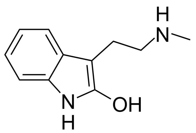 Keywords: 2-Hydroxy-NMT.svg small diagram of the alkaloid 2-Hydroxy-NMT for use in tables Own 2007-04-24 Eloil Tryptamines