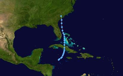 | Keywords: 2-L 1979 track.png Track map of Tropical Depression Two of the 1979 Atlantic hurricane season The points show the location of the storm at 6-hour intervals The colour represents the storm's maximum sustained wind speeds as classified in the Saffir-Simpson Hurricane Scale see below and the shape of the data points represent the nature of the storm according to the legend below User Nilfanion/Tc/T Created by Cyclonebiskit using Wikipedia WikiProject Tropical cyclones/Tracks The background image is from NASA Tracking data switch source from the National Hurricane Center <sup>http //www nhc noaa gov/pastall shtml</sup> from the Central Pacific Hurricane Center <sup>http //www prh noaa gov/cphc/summaries/</sup> from the Joint Typhoon Warning Center <sup>https //metocph nmci navy mil/jtwc/best_tracks/</sup> from the Japan Meteorological Agency <sup>http //www jma go jp/jma/jma-eng/jma-center/rsmc-hp-pub-eg/besttrack html</sup> from the National Hurricane Center <sup>http //www nhc noaa gov/pastall shtml and the Central Pacific Hurricane Center http //www prh noaa gov/cphc/summaries/</sup> from the Central Pacific Hurricane Center <sup>http //www prh noaa gov/cphc/summaries/ and the Joint Typhoon Warning Center https //metocph nmci navy mil/jtwc/best_tracks/</sup> from the w National Hurricane Center <sup>http //www nhc noaa gov/pastall shtml</sup> or the Joint Typhoon Warning Center <sup>https //metocph nmci navy mil/jtwc/best_tracks/</sup> June 11-16 1979 Cyclonebiskit checked 1979 Atlantic hurricane season Tropical cyclone tracks Atlantic hurricane tracks |