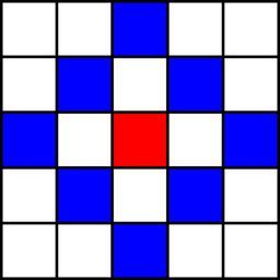 | Keywords: แบบจำลอง2มิติ ที่แสดงอนุภาคภายใน.svg en The figure shows a simulated two-dimensional particle within the red cells It is surrounded by neighboring cells blue th จากรูปแสดงภาพจำลอง 2 มิติ ซลล์สีแดง ป็นอนุภาคภายใน พราะถูกล้อมรอบด้วย ซลล์ ซลล์ข้าง คียง สีน้ำ งิน ถ้า รามีจำนวนอนุภาค ยอะกว่านี้ต้อง ใช้แบบจำลอง 3 มิติในการพิจารณา 100px Fred the Oyster<br/> v 2014-10-12 Blue red white Images created by Fred the Oyster | ||||