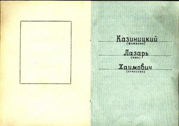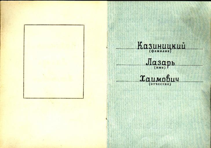 Keywords: 2or knig1.jpg ru Лицевая сто она о денской книжки Лаза я Ефимовича Казиницкого Документ из семейного а хива пе еданный для публикации наследником Л Е Казиницкого Имеется письменное аз ешение 2012-04-09 Лицевая сто она о денской книжки Лаза я Ефимовича Казиницкого Документ из семейного а хива пе еданный для публикации наследником Л Е Казиницкого Имеется письменное аз ешение Официальный документ Авто госуда ственный о ган СССР cc-zero Petrischule Uploaded with UploadWizard Military history |