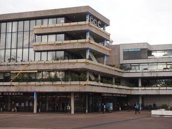 Keywords: 30C3 Aussen 05.jpg CCH in Hamburg zum 30C3 - Hier gut erkennbar die gelbe Rohrpost-Verkabelung 2013-12-28 own Ordercrazy cc-zero 30C3 Congress Center Hamburg Uploaded with VicuñaUploader