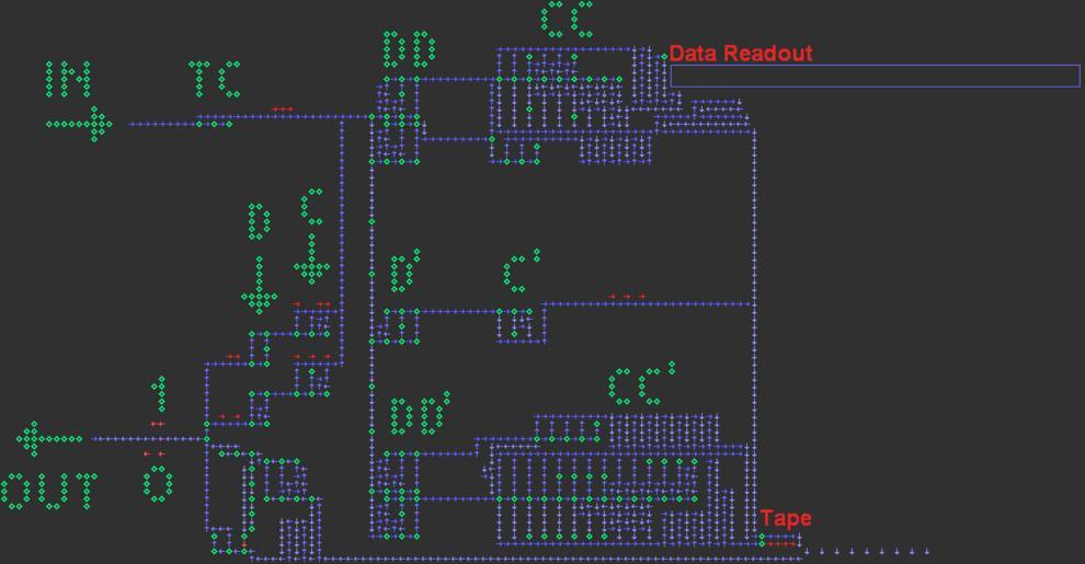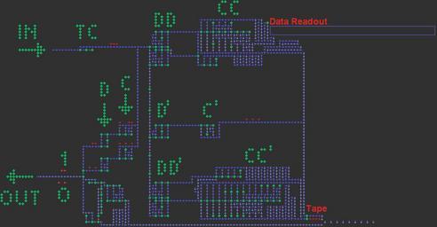 | Keywords: 320 jump read arm.gif en Example of a 29-state read arm The circuitry allows the series of quiescent south-pointing ordinary cells to be treated as bits storing information The animated gif was produced by a Java program contact me for source code the original cellular automaton pattern was created by Renato Nobili renato nobili pd infn it and lifted from the Golly simulator Read arm demo Author Renato Nobili <renato nobili pd infn it> Controls are provided to direct the read arm r-arm Set the machine running at a slow speed to see it working A pulse on the input line IN causes the pattern to send one of two signal-trains down the output line OUT depending on the presence 1 or absence 0 of a mark on the tape at the current position The reading head then moves forward ready to read the next cell As with the construction arm OTS blue and STS red lines work together to manipulate the cells at the end of the read arm Various coders C and decoders D are used to send the required signal trains which depend on the output of the read operation since the read head is left in one of two states Other controls not shown are needed to retract the read-arm http //www pd infn it/~rnobili/wjvn/index htm http //www pd infn it/~rnobili/au_cell/ http //en wikipedia org/wiki/Von_Neumann_universal_constructor http //en wikipedia org/wiki/Von_Neumann_cellular_automata Originally distributed as RW-ARM_ADV JVN Redistributed with permission own 06 06 27 August 2009 UTC Simpsons contributor talk Simpsons contributor en Original upload log en wikipedia ftcg page en wikipedia 320_jump_read_arm gif wikitable - 08 29 30 August 2009 1 157 × 602 1 791 087 bytes Simpsons contributor w en <nowiki> </nowiki> - 06 06 27 August 2009 1 157 × 602 2 019 057 bytes Simpsons contributor w en <nowiki> Example of a 29-state read arm The circuitry allows the series of quiescent south-pointing ordinary cells to be treated as bits storing information A read arm is one of four parts essential to a von-Neumann universal con </nowiki> Uncategorized 2013 April 26 |