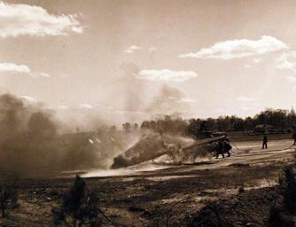 Keywords: outdoor monochrome sky 330-PS-1341 (USN 706235): The U.S. Navy demonstrates fire-fighting. A pumper truck sprays the blazing plane with a sudsy blanket of “foamite” used for smothering gasoline fires. Members of the crash, fire and rescue crew move in with hoses to play suds on “Fire-Eaters” who will rescue the dummy pilot. The rescuers are in the smoke on the wing of the fighter. Photograph released May 15, 1951. (6/16/2015). 330-PS-1341 (USN 706235): The U.S. Navy demonstrates fire-fighting. A pumper truck sprays the blazing plane with a sudsy blanket of “foamite” used for smothering gasoline fires. Members of the crash, fire and rescue crew move in with hoses to play suds on “Fire-Eaters” who will rescue the dummy pilot. The rescuers are in the smoke on the wing of the fighter. Photograph released May 15, 1951. (6/16/2015). |