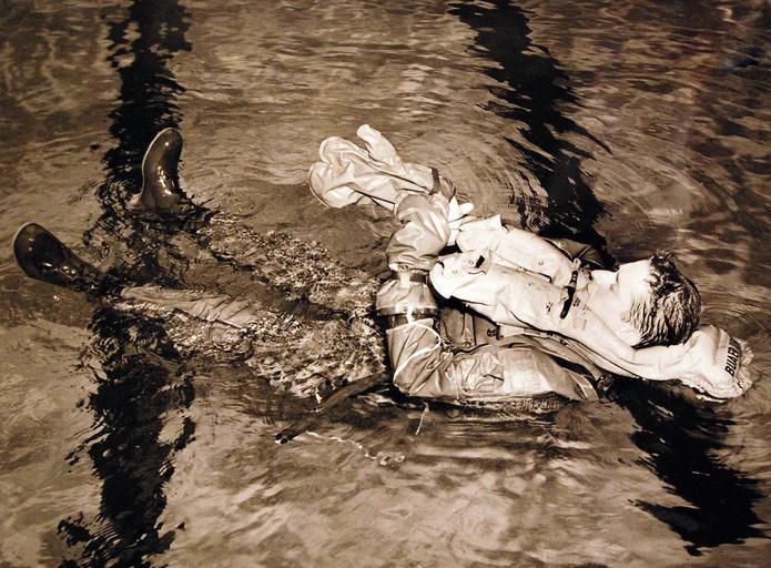 | Keywords: outdoor texture 330-PS-3007 (USN 446563): A pilot demonstrates the Mark 4 Exposure Suit showing the excellent flotation qualities and is putting on the gloves. Master caption: The New Mark 4 Exposure Suit. Developed by the Aeronautical Medical Equipment Laboratory, Naval Air Material Center, Philadelphia, Pennsylvania, is an improved version of the Mark 3 Exposure Suit. The new suit shows excellent floatation qualities and is equipped with quick-donning gloves, better fitting pockets, and the sleeves have been lengthened, adding thermal protection to the wrists. An insulated boot, requiring no extra heavy sock has been provided. The Mark 4 allows the pilot more mobility and the bulk has been cut down considerably. Photograph released October 13, 1952. (5/12/2015). 330-PS-3007 (USN 446563): A pilot demonstrates the Mark 4 Exposure Suit showing the excellent flotation qualities and is putting on the gloves. Master caption: The New Mark 4 Exposure Suit. Developed by the Aeronautical Medical Equipment Laboratory, Naval Air Material Center, Philadelphia, Pennsylvania, is an improved version of the Mark 3 Exposure Suit. The new suit shows excellent floatation qualities and is equipped with quick-donning gloves, better fitting pockets, and the sleeves have been lengthened, adding thermal protection to the wrists. An insulated boot, requiring no extra heavy sock has been provided. The Mark 4 allows the pilot more mobility and the bulk has been cut down considerably. Photograph released October 13, 1952. (5/12/2015). |