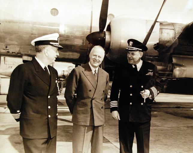 Keywords: people 330-PS-3249 (USN 708808): During ceremonies at California, Captain R.W.D. Woods, left, Bureau of Aeronautics Representative, accepted the Navy’s first R7V-1 Lockheed “Super Constellation” from Lockheed Aircraft Corporation President Robert K. Gross (center). The 106 passenger plane can be quickly converted to an 18 ton cargo freighter, or a 73 patient ambulance. It has hard facing seats. Called “The Fastest of the Fleet,” the R7V-1 can be used for faster personnel movement, cargo shipment, and hospital plane operations, March 12, 1953. (5/5/2015). 330-PS-3249 (USN 708808): During ceremonies at California, Captain R.W.D. Woods, left, Bureau of Aeronautics Representative, accepted the Navy’s first R7V-1 Lockheed “Super Constellation” from Lockheed Aircraft Corporation President Robert K. Gross (center). The 106 passenger plane can be quickly converted to an 18 ton cargo freighter, or a 73 patient ambulance. It has hard facing seats. Called “The Fastest of the Fleet,” the R7V-1 can be used for faster personnel movement, cargo shipment, and hospital plane operations, March 12, 1953. (5/5/2015). |