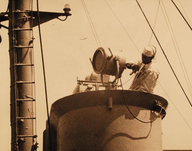 | Keywords: monochrome 330-PS-6632 (USN 709170): Tests for radioactivity are made on board the U.S. Navy tanker USS Patapsco, which received slight and not dangerous contamination by radioactive fall-out while operating in support of the task force conducting tests in the Eniwetok-Bikini area. As an extreme precaution, the ship and its crew of six officers and 86 men were brought to Pearl Harbor Naval Shipyard for checking and complete decontamination. None of the personnel received sufficient radiation to be in any way harmful. Although it has been established that no apparent possibility of injury to crew members exists, all members of the crew were removed from the ship and given thorough medical examinations as an extra safety measure. This examination gave no evidence of any harmful effects from the slight exposure. Photograph released April 8, 1954. (4/7/2015). Operation Crossroads. 330-PS-6632 (USN 709170): Tests for radioactivity are made on board the U.S. Navy tanker USS Patapsco, which received slight and not dangerous contamination by radioactive fall-out while operating in support of the task force conducting tests in the Eniwetok-Bikini area. As an extreme precaution, the ship and its crew of six officers and 86 men were brought to Pearl Harbor Naval Shipyard for checking and complete decontamination. None of the personnel received sufficient radiation to be in any way harmful. Although it has been established that no apparent possibility of injury to crew members exists, all members of the crew were removed from the ship and given thorough medical examinations as an extra safety measure. This examination gave no evidence of any harmful effects from the slight exposure. Photograph released April 8, 1954. (4/7/2015). Operation Crossroads. |