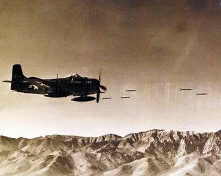 Keywords: outdoor 330-PS-68 (USN 707573): Navy’s New Air-To-Air Combat Rocket – the Mighty Mouse. The Douglas AD “Skyraider” test fires the first successful air-to-air rocket, named the “Mighty Mouse,” which has been developed by the Navy Bureau of Ordnance. The new rocket is small enough to be carried in quantity by its mother aircraft, yet fast and powerful enough to destroy any known plane with a direct hit. It is built with folding fins, which reduce air resistance of the mother plane and increases the carrying capacity of the launches. The rockets may be fired singly or in salvo from the launcher, which is attached to the airplane’s wings or to its fuselage. Photograph released February 9, 1950. (8/18/2015). 330-PS-68 (USN 707573): Navy’s New Air-To-Air Combat Rocket – the Mighty Mouse. The Douglas AD “Skyraider” test fires the first successful air-to-air rocket, named the “Mighty Mouse,” which has been developed by the Navy Bureau of Ordnance. The new rocket is small enough to be carried in quantity by its mother aircraft, yet fast and powerful enough to destroy any known plane with a direct hit. It is built with folding fins, which reduce air resistance of the mother plane and increases the carrying capacity of the launches. The rockets may be fired singly or in salvo from the launcher, which is attached to the airplane’s wings or to its fuselage. Photograph released February 9, 1950. (8/18/2015). |