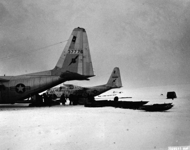 | Keywords: blackandwhite monochrome airplane aircraft vehicle outdoor black and white 330-PSA-70-64 (USAF 169511): Staib Trans-Atlantic North Pole Expedition 1964. Norwegian explorers, led by 25 year-old Bjorn Staib, are now on Ellsmere Island (Canadian Northwest Territory) making final preparations for their attempt to make the first surface traverse across the North Pole from northernmost Canada to Spitzbergen or the Severnaya Zemlya Islands off Siberia. Traveling on skis, Bjorn and three members of the 11 man expedition hope to complete the trek in 90 to 100 days. Sponsored by the National Geographic Society (which first won international attention by supporting Robert E. Peary’s trip to North Pole in 1909), the United States and the Norwegian armed forces, the National Science Foundation and the Arctic Institute of North America, the group plans for the 11 men and about 100 dogs to take food, equipment and other supplies on the initial 600 miles of the journey. From there four of the adventurers will make the dash across the Pole. Shown: team members unloading equipment and supplies from USAF C-130s which transported the group from Greenland to Ellsemere Island where the expedition will begin. Photograph released March 23, 1964. (2015/10/27). 330-PSA-70-64 (USAF 169511): Staib Trans-Atlantic North Pole Expedition 1964. Norwegian explorers, led by 25 year-old Bjorn Staib, are now on Ellsmere Island (Canadian Northwest Territory) making final preparations for their attempt to make the first surface traverse across the North Pole from northernmost Canada to Spitzbergen or the Severnaya Zemlya Islands off Siberia. Traveling on skis, Bjorn and three members of the 11 man expedition hope to complete the trek in 90 to 100 days. Sponsored by the National Geographic Society (which first won international attention by supporting Robert E. Peary’s trip to North Pole in 1909), the United States and the Norwegian armed forces, the National Science Foundation and the Arctic Institute of North America, the group plans for the 11 men and about 100 dogs to take food, equipment and other supplies on the initial 600 miles of the journey. From there four of the adventurers will make the dash across the Pole. Shown: team members unloading equipment and supplies from USAF C-130s which transported the group from Greenland to Ellsemere Island where the expedition will begin. Photograph released March 23, 1964. (2015/10/27). |