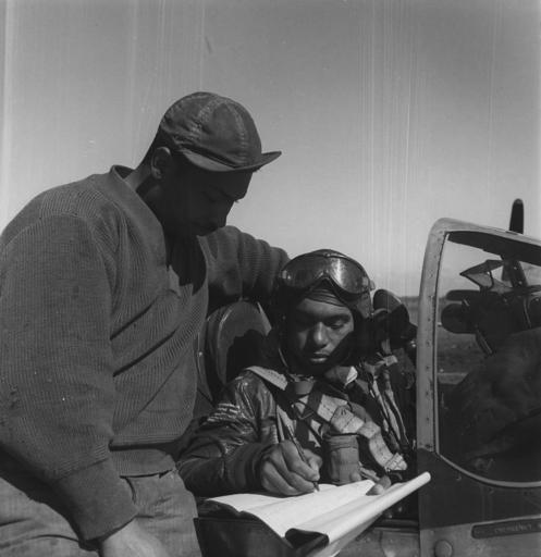 | Keywords: 332ndFighterGroup-pilot.jpg en Photograph shows a pilot from the 332nd Fighter Group signing the Form One Book indicating any discrepancies of aircraft prior to take off Source Woodrow W Crockett 332nd Fighter Group pilot Tuskegee Airmen Toni Frissell Collection Library of Congress http //hdl loc gov/loc pnp/ppmsca 13247 Creator Toni Frissell 1945-03 PD-USGov Toni Frissell Italian Campaign World War II 332d Fighter Group United States Army Air Forces | ||||