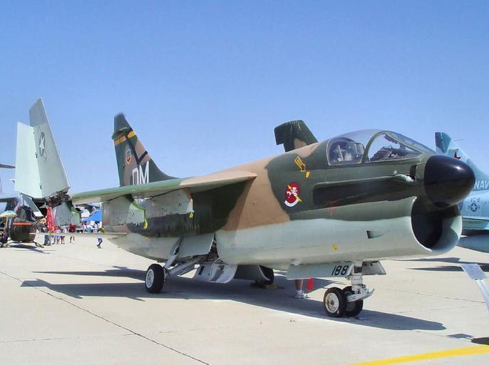 | Keywords: 357th Tactical Fighter Squadron A-7D Corsar II 69-6188 2.jpg en 357th Tactical Fighter Squadron A-7D Corsar II 69-6188 1971 Aircraft delivered to 355th Tactical Fighter Wing/357th TFS Davis-Monthan AFB AZ C/N D-018 Aircraft removed from flight duites re-designated GA-7D Ground Trainer 1984 Assigned to Lowry AFB CO Decommissioned in 1991 aircraft now on display at March Field Air Museum Riverside California 1972 United States Air Force United States Air Force other versions PD-USGov DEFAULTSORT Squadron 0357 Uploaded with UploadWizard A-7D Corsair II at Davis-Monthan Air Force Base |
