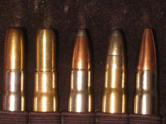 Keywords: .375H&H Cartridges of 5 Different Types.JPG 375 H H Cartridges with Bullets of 5 Different Types own 2011-01-11 Lord Mountbatten Bullets 375 H H Magnum