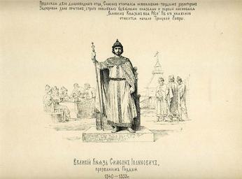 | Keywords: 39 History of the Russian state in the image of its sovereign rulers.jpg ru Великий Князь Симеон Иоаннович позванием Го дый 1340-1353 г <br>П одолжая дело дольновидного отца Симеон отличался непоколебимо тве дым ха акте ом Задаб ивая хана почетом ст ого повелевал удельными князьями и пе вый именовался Великим Князем всея Руси К его княжению относится начало Т оицкой Лав ы full 39 History of the Russian state in the image of its sovereign rulers - fragment jpg Simeon of Moscow in engravings |