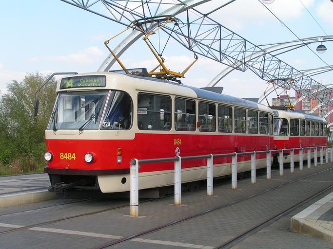Keywords: Трамвай Татра Т3 Прага Сидлиште Баррандов.jpg Tatra T3R P tram in Prague has arrived at Sidlište Barrandov terminus Т амвай Tatra T3R P в П аге п ибыл на конечную остановку Сидлиште Ба андов 2006-10-25 Own Achp ru Sídliště Barrandov tram stop Tram 8484 Prague Prague s Tatra T3R P in M+M consist