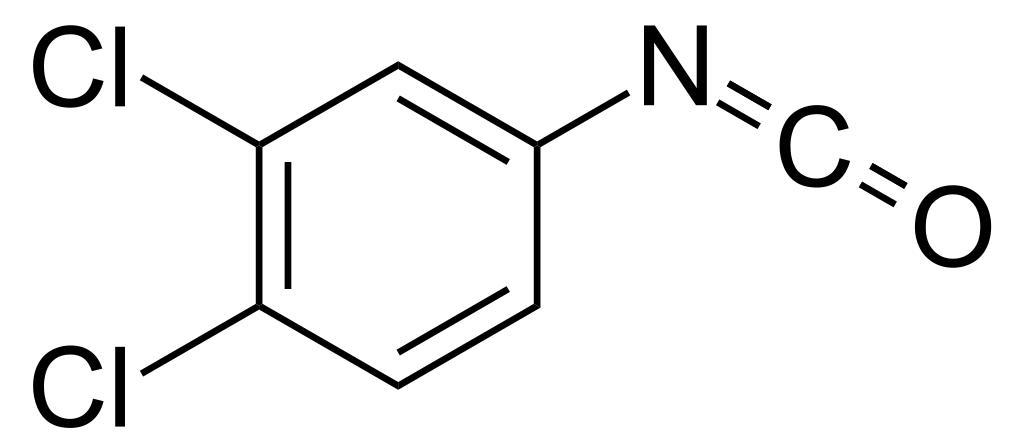 Keywords: 3,4-Dichlorphenylisocyanate.svg Chemical structure of 3 4-dichlorphenylisocyanate Own 11 23 13 July 2012 UTC Ed Edgar181 Dichlorobenzenes Isocyanates