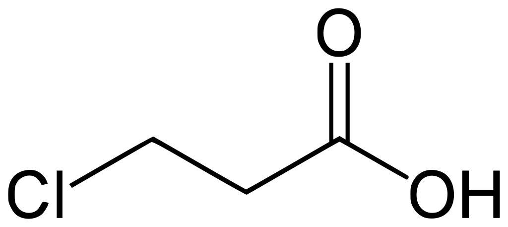 Keywords: 3-chloropropionic acid.svg en 3-chloropropionic acid; beta-Chloropropionic acid; UMB66 de 3-Chlorpropionsäure; β-Chlorpropionsäure own Yikrazuul 2010-01-17 Organochlorides Carboxylic acids