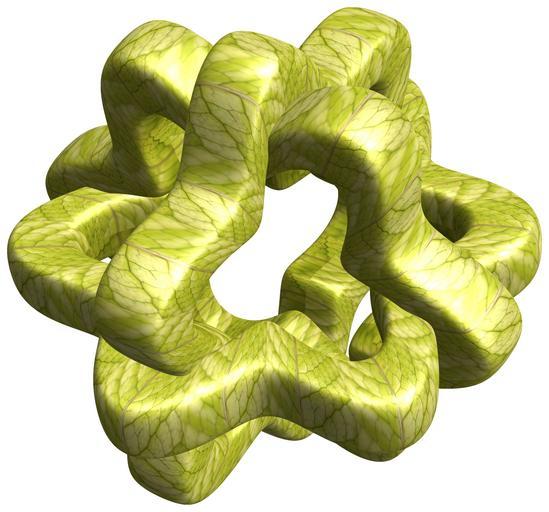 | Keywords: mathematica 3d cg parametricplot3d texture torus 輪環 りんかん ドーナツ どーなつ 六芒星 ろくぼうせい 六光星 ろくこうせい 六稜星 ろくりょうせい program プログラム code コード algorithm コード アルゴリズム hexagram geometric sculpture geometricsculpture shape geometry sculpture mapping テクスチャ マッピング 模様 もよう abstract 抽象 ちゅうしょう アブストラクト design pattern デザイン パターン graphic グラフィック グラフィクス structure 意匠 構造 symmetry 対称性 たいしょうせい シンメトリー 対称 たいしょう algorithm white background indoor a = 5; (* center hole size of a torus *) b = 6; (* hexa-torus *) d = 3; (* number of torus *) SetOptions[ParametricPlot3D, PlotRange -> Full, Mesh -> None, Boxed -> False, Axes -> None, PlotPoints -> 400, ImageSize -> 3000, PlotStyle -> Directive[Specularity[White, 30], Texture[Import["D:/tmp/71.jpg"]]], TextureCoordinateFunction -> ({#4, #5 b Pi} &), Lighting -> "Neutral"]; x = (a - Cos[t] - Sin[b s]) Cos[s + Pi/(2 b)]; y = Sin[2 Sin[Sin[Sin[t]]]]; z = (a - Cos[t] - Sin[b s]) Sin[s + Pi/(2 b)]; rot = Table[{x, y, z}.RotationMatrix[2 i Pi/d, {1, 1, 1}], {i, d}]; ParametricPlot3D[rot, {t, 0, 2 Pi}, {s, 0, 2 Pi}] (*--- The Texture *) a = 5; (* center hole size of a torus *) b = 6; (* hexa-torus *) d = 3; (* number of torus *) SetOptions[ParametricPlot3D, PlotRange -> Full, Mesh -> None, Boxed -> False, Axes -> None, PlotPoints -> 400, ImageSize -> 3000, PlotStyle -> Directive[Specularity[White, 30], Texture[Import["D:/tmp/71.jpg"]]], TextureCoordinateFunction -> ({#4, #5 b Pi} &), Lighting -> "Neutral"]; x = (a - Cos[t] - Sin[b s]) Cos[s + Pi/(2 b)]; y = Sin[2 Sin[Sin[Sin[t]]]]; z = (a - Cos[t] - Sin[b s]) Sin[s + Pi/(2 b)]; rot = Table[{x, y, z}.RotationMatrix[2 i Pi/d, {1, 1, 1}], {i, d}]; ParametricPlot3D[rot, {t, 0, 2 Pi}, {s, 0, 2 Pi}] (*--- The Texture *) |