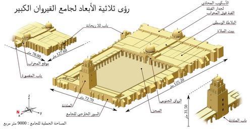 | Keywords: 3D computer modeling of the Great mosquee of Kairouan-ar.svg Great Mosque of Kairouan Tunisia From left to right zoom on the south wall seen from the outside global view of the mosque zoom on the minaret seen from the court Grande Mosquée de Kairouan en Tunisie De gauche à droite zoom sur la façade sud vue de l'extérieur vue d'ensemble de l'édifice zoom sur le minaret vu de la cour Own en Modeled in 6 days using SolidWorks 2001 Post-production in Photoshop and Inkscape Based on architectural plans and fifty photos of the building Tachymètre <span class signature-talk >talk</span> 2010-01-06 English version French version blank version en N B The raster graphic currently incorporated in the SVG has been scaled down to 40 of its original size from 2750 1350 px to 1100 540 px Consequently the SVG file may be scaled up 2 5 times for rendering in an article Architectural 3D drawings Great Mosque of Kairouan |