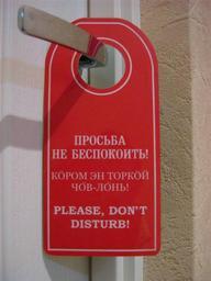 | Keywords: 3LangHotel.JPG en Three-lingual sign in a hotel in Ukhta Komi Republic own Ds02006 Ukhta Russian inscriptions Komi-Zyrian inscriptions Multilingual signs in Russia Door handles in Russia Doors with writing Trilingual signs Don't disturb signs Red signs Inscriptions in Russia |