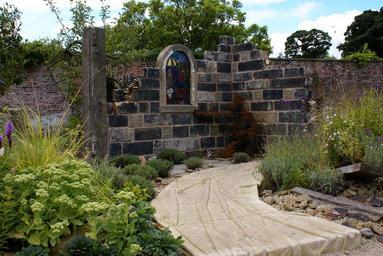 Keywords: chorley lancashire chorleylancashire chorley 2015 chorley2015 stanley everiss stanleyeveriss the evaders garden theevadersgarden astley park astleypark rhs chelsea flower show chelseaflowershow outdoor garden Chorley's entry in the 2015 RHS Chelsea Flower Show. By Chorley designer John Everiss in memory of his late father Stan Everiss. On the night of 16th April 1943 RAF Navigator F/O Stanley Everiss was returning from a bombing mission over Mannheim when his MkIII Short Stirling bomber was shot down. Suffering concussion and spinal injuries Stan was rescued by members of the resistance movement. After traveling across France to Spain and eventually Gibraltar Stan was eventually repatriated. This is a very abbreviated account of Stan's incredible escape. Just Google Stanley Everiss and read more. Let's not forget the many innocent civilians and military personnel on all sides of this war and other conflicts who lost their lives or lost loved ones. I don't dispute a country's need to have a defensive force, but in war there are no real winners. Everybody loses. The path leading up to the bombed out church is in the form of a deployed parachute. The ghostly figure of Stan in the bombed out church is made of stacked steel plates. A low viewing angle enables the viewer to see through the gaps in the plates. Some of the stones bear the names of resistance members who helped Stan. Chorley's entry in the 2015 RHS Chelsea Flower Show. By Chorley designer John Everiss in memory of his late father Stan Everiss. On the night of 16th April 1943 RAF Navigator F/O Stanley Everiss was returning from a bombing mission over Mannheim when his MkIII Short Stirling bomber was shot down. Suffering concussion and spinal injuries Stan was rescued by members of the resistance movement. After traveling across France to Spain and eventually Gibraltar Stan was eventually repatriated. This is a very abbreviated account of Stan's incredible escape. Just Google Stanley Everiss and read more. Let's not forget the many innocent civilians and military personnel on all sides of this war and other conflicts who lost their lives or lost loved ones. I don't dispute a country's need to have a defensive force, but in war there are no real winners. Everybody loses. The path leading up to the bombed out church is in the form of a deployed parachute. The ghostly figure of Stan in the bombed out church is made of stacked steel plates. A low viewing angle enables the viewer to see through the gaps in the plates. Some of the stones bear the names of resistance members who helped Stan.
