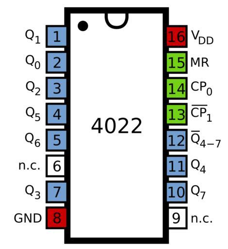 Keywords: 4022 Pinout.svg en Pinpout diagram of the 4022 divide-by-8 Johnson counter IC own Inductiveload 2009-09-21 IC pinout diagrams 4000 Series