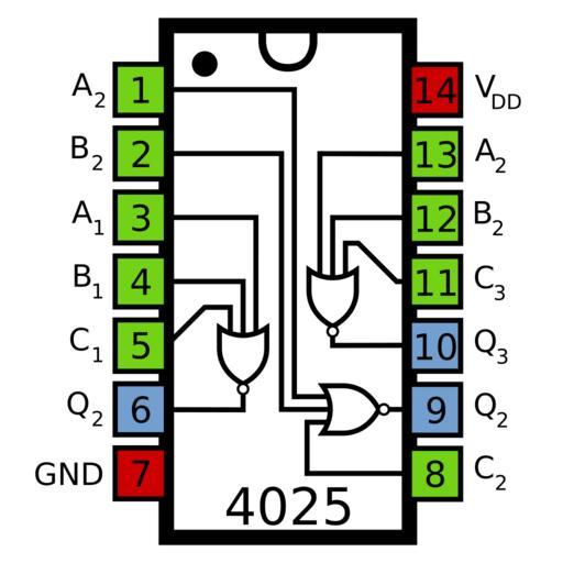 Keywords: 4025 Pinout.svg en Pinout of a 4025 Triple 3-Input NOR gate CMOS IC own Inductiveload 2008-12-22 IC pinout diagrams 4000 Series