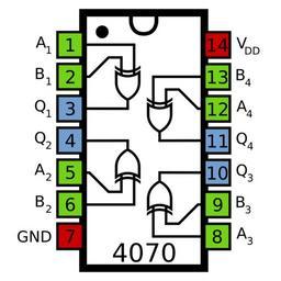 Keywords: 4070 Pinout.svg en Pinout diagram of the the 4070 Quad 2-Input XOR gate CMOS IC own Inductiveload 2008-12-23 IC pinout diagrams 4000 Series