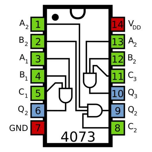 Keywords: 4073 Pinout.svg en Pinout diagram of the 4073 triple 3-input AND gate logic IC own Inductiveload 2009-09-22 IC pinout diagrams