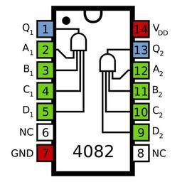 Keywords: 4082 Pinout.svg en Pinout diagram of the 4082 dual 4-input AND gate IC own Inductiveload 2009-06-21 IC pinout diagrams 4000 Series 4082 number