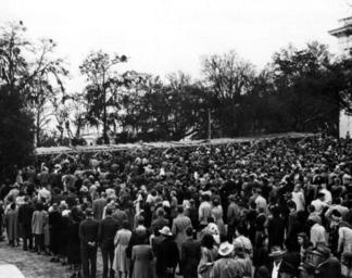 Keywords: florida state library and archives of florida statelibraryandarchivesofflorida barbecue bbq cookouts cookout tallahassee blackandwhite monochrome crowd people outdoor black and white Local call number: gv035014 Title: [40 serving lines at the free inaugural day barbecue: Tallahassee, Florida] Physical descrip: 1 photoprint; b&w; 8 x 10 in. Date: January 4, 1949 General note: There were 40 serving lines to accomodate the crowd of 35,000-40,000 at the free inaugural barbecue. Repository: State Library and Archives of Florida, 500 S. Bronough St., Tallahassee, FL 32399-0250 USA. Contact: 850.245.6700. Archives@dos.state.fl.us Persistent URL: www.floridamemory.com/items/show/128769 Local call number: gv035014 Title: [40 serving lines at the free inaugural day barbecue: Tallahassee, Florida] Physical descrip: 1 photoprint; b&w; 8 x 10 in. Date: January 4, 1949 General note: There were 40 serving lines to accomodate the crowd of 35,000-40,000 at the free inaugural barbecue. Repository: State Library and Archives of Florida, 500 S. Bronough St., Tallahassee, FL 32399-0250 USA. Contact: 850.245.6700. Archives@dos.state.fl.us Persistent URL: www.floridamemory.com/items/show/128769 |