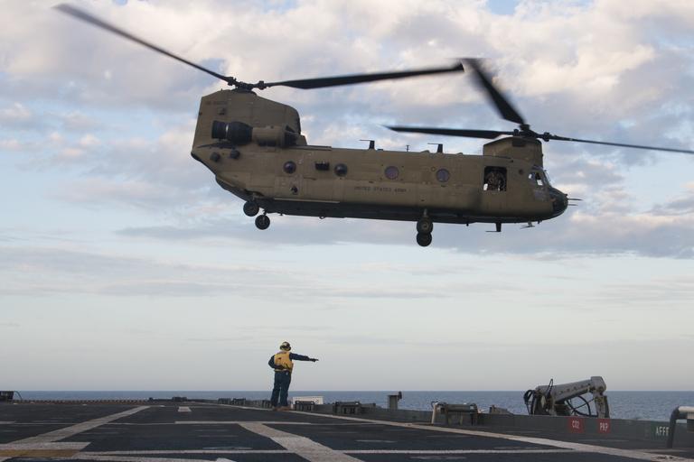 Keywords: 40th cab 40thcab 40th combat aviation brigade 40thcombataviationbrigade ch-47 chinook ch47chinook chinook helicopter deck landing qualification decklandingqualification dlq deck landing decklanding uss ponce ussponce afsb afloat forward staging base afloatforwardstagingbase aviation pilot army soldier california army national guard californiaarmynationalguard 1-168 avn 1168avn washington national guard washingtonnationalguard oregon national guard oregonnationalguard persian gulf persiangulf outdoor An Army National Guard Ch-47 Chinook helicopter from Company B, 1st Battalion, 168th Aviation Regiment, 40th Combat Aviation Brigade, takes off from the USS Ponce, an Afloat Forward Staging Base, in the Persian Gulf March 14. The 40th CAB practices landings aboard Naval vessels every month. (U.S. Army photo by Staff Sgt. Ian M. Kummer) An Army National Guard Ch-47 Chinook helicopter from Company B, 1st Battalion, 168th Aviation Regiment, 40th Combat Aviation Brigade, takes off from the USS Ponce, an Afloat Forward Staging Base, in the Persian Gulf March 14. The 40th CAB practices landings aboard Naval vessels every month. (U.S. Army photo by Staff Sgt. Ian M. Kummer)