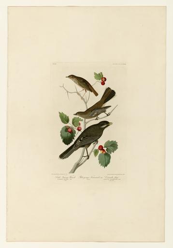 | Keywords: 419 I. Little Tawny Thrush - 2. Ptiliogony's Townsendi - 3. Canada Jay.jpg LargeImage 418_I _American_Ptarmigan_-_2 _White-tailed_Grous jpg 420_Prairie_Starling jpg Plate 419 of Birds of America by John James Audubon depicting I Little Tawny Thrush - Ptiliogony's Townsendi - Canada Jay http //images library pitt edu/cgi-bin/i/image/image-idx view entry;cc audimg;entryid x-aud0419 University of Pittsburgh 1827-1838 creator John James Audubon PD-old-100 The Birds of America | ||||