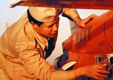 | Keywords: 428-GX-K-125803_Box 875: Chief Aviation Machinist’s Mate Romeo Sanantonio, crew chief for Fleet Composite Squadron Six, VC-6, prepares to launch an MQM-74C remotely controlled, variable speed, recoverable gunnery target drone at Naval Air Station, Norfolk Virginia. Photographed by PH1 Ron W. Bayles, November 1979. Photographed from reference card. (2015/12/22). 428-GX-K-125803_Box 875: Chief Aviation Machinist’s Mate Romeo Sanantonio, crew chief for Fleet Composite Squadron Six, VC-6, prepares to launch an MQM-74C remotely controlled, variable speed, recoverable gunnery target drone at Naval Air Station, Norfolk Virginia. Photographed by PH1 Ron W. Bayles, November 1979. Photographed from reference card. (2015/12/22). |