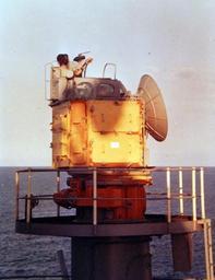 | Keywords: 428-GX-K-66593_Box 875: A crewman mans a Gun Director for a 5”, 38 caliber twin mount gun board USS New Jersey (BB 62) in the South China Sea. Photographed by John M. Cary, January 21, 1968. Photographed from reference card. (2015/12/22). 428-GX-K-66593_Box 875: A crewman mans a Gun Director for a 5”, 38 caliber twin mount gun board USS New Jersey (BB 62) in the South China Sea. Photographed by John M. Cary, January 21, 1968. Photographed from reference card. (2015/12/22). | ||||