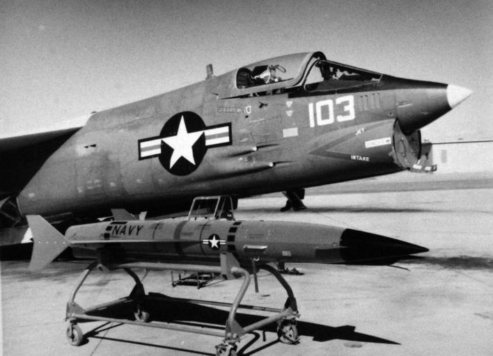 Keywords: blackandwhite monochrome airplane vehicle aircraft black and white 428-GX-KN-35027: An AQM-37 missile target system on a stand beside an F-8 “Crusader” fighter aircraft at Point Mugu, California. Photographed by PH2 Cornish, March 7, 1969. U.S. Navy photograph, now in the collections of the National Archives. (Black and White Only.) (2015/12/15). 428-GX-KN-35027: An AQM-37 missile target system on a stand beside an F-8 “Crusader” fighter aircraft at Point Mugu, California. Photographed by PH2 Cornish, March 7, 1969. U.S. Navy photograph, now in the collections of the National Archives. (Black and White Only.) (2015/12/15). |