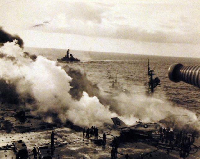 Keywords: outdoor 428-GX-USN-1140835: Pacific Ocean. USS Rogers (DD 876) aids crewmen of USS Enterprise (CVN 65) as they fight the fire on the after flight deck. The fire broke out as the ship was conducting air operations 75 miles south of Pearl Harbor. Photographed by PH2 Patrick J. Ryan, January 14, 1969. Official U.S. Navy photograph, now in the collections of the National Archives. (2016/07/26). 428-GX-USN-1140835: Pacific Ocean. USS Rogers (DD 876) aids crewmen of USS Enterprise (CVN 65) as they fight the fire on the after flight deck. The fire broke out as the ship was conducting air operations 75 miles south of Pearl Harbor. Photographed by PH2 Patrick J. Ryan, January 14, 1969. Official U.S. Navy photograph, now in the collections of the National Archives. (2016/07/26). |