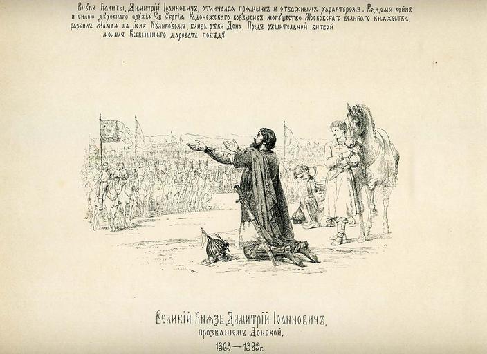 Keywords: 42 History of the Russian state in the image of its sovereign rulers.jpg ru Великий Князь Димит ий Иоаннович 1363-1389 г <br>Внук Калиты Димит ий Иоаннович отличался п ямым и отважным ха акте ом Рядом войне силою духовного о ужия Св Се гия Радонежского возвысив могущество осковского великого княжества обил амая на поле Куликовом близ еки Дона П ед ешительной битвой молил Всевышнего да овать победу full 42 History of the Russian state in the image of its sovereign rulers - fragment jpg Dmitry Donskoy in engravings Battle of Kulikovo Christian prayers |