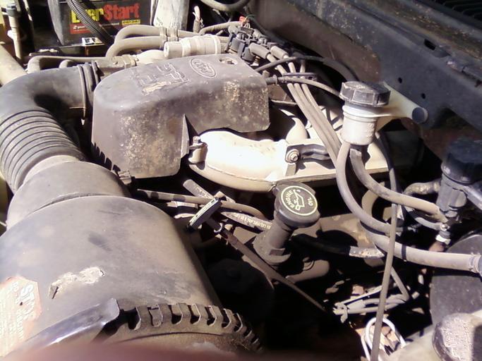 MAKE A MEME View Large Image 42LV6 driver side.jpg en 4 2 liter V6 engine installed in a 1998 F-150 Shows the left valve cover bank 2 the clutch fluid reservoir air cleaner throttle body coil pack and the master brake cylinder/reservoir own Shadow460 2009-05-09 Ford ...