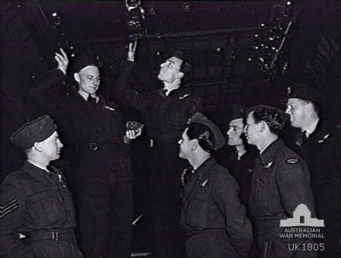 | Keywords: 460 Squadron RAAF aicrew 21 Aug 1944 AWM UK1805.jpg AWM caption LINCOLNSHIRE ENGLAND 1944-08-21 BACK FROM ATTACK ON ENEMY TARGET AUSTRALIAN LANCASTER CAPTAIN OF NO 460 SQUADRON RAAF AT RAF STATION BINBROOK 421340 FLYING OFFICER FO H P KORSMAN MYALL LAKES NSW SHOWS RAAF FLIERS PIECE OF HEAVY FLAK WHICH PENETRATED THE BOMB BAY OF THE AIRCRAFT WHILE 410501 FLIGHT SERGEANT F SGT J C LAWSON MELBOURNE VIC RAF POINTS OUT THE HOLE MADE BY THE FLAK <br> LEFT TO RIGHT 421340 FLYING OFFICER FO H P KORSMAN MYALL LAKES NSW 410501 FLIGHT SERGEANT F SGT J C LAWSON MELBOURNE VIC RAF 423156 F SGT R A DOWD CANTERBURY NSW 424153 F SGT J C SMITH FIVE DOCK NSW 417933 FO M J MCCARTHY JAMESTOWN SA UK1805 1944-08-21 not stated Copyright expired - public domain PD-Australia Avro Lancaster aircrew World War II people of the Royal Australian Air Force No 460 Squadron RAAF RAF Binbrook Aircraft damaged in combat Lancaster Photographs taken on 1944-08-21 Binbrook August 1944 in Lincolnshire 19440821 Binbrook ImageNote 1 88 90 105 103 450 341 2 421340 FLYING OFFICER FO H P KORSMAN MYALL LAKES NSW SHOWS RAAF FLIERS PIECE OF HEAVY FLAK WHICH PENETRATED THE BOMB BAY OF THE AIRCRAFT ImageNoteEnd 1 ImageNote 2 189 46 74 98 450 341 2 410501 FLIGHT SERGEANT F SGT J C LAWSON MELBOURNE VIC RAF POINTS OUT THE HOLE MADE BY THE FLAK ImageNoteEnd 2 |