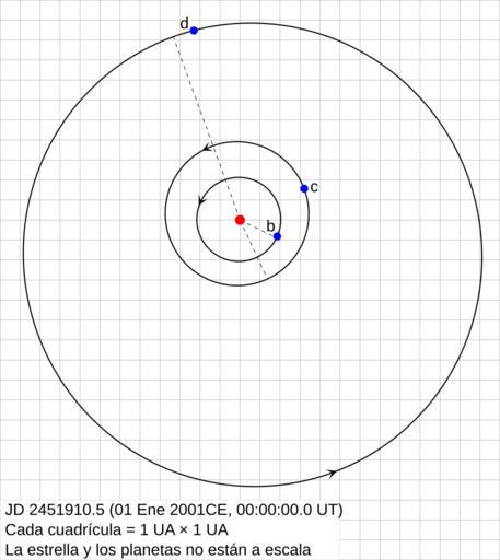 | Keywords: 47UMaOrbits es.svg en Plot of the orbits of the 47 Ursae Majoris system Orbit data taken from Gregory Fischer 2010 MNRAS preprint DOI 10 1111/j 1365-2966 2009 16233 A Bayesian periodogram finds evidence for three planets in 47 Ursae Majoris The orbits are plotted under the assumption of coplanarity and that all planets revolve around the star in the same direction taken to be anticlockwise The direction towards Earth is upwards at some unknown angle into or out of the diagram Orbits are plotted so that the focus of each planet's orbit is at the centre-of-mass of the inner planets Uncertainties in the orbital parameters which are considerable for planet d are not displayed 47UMaOrbits svg 2011-01-22 23 26 UTC 47UMaOrbits svg Icalanise derivative work Furado <span class signature-talk >talk</span> Text in Spanish language Furado 47UMaOrbits svg 47 Ursae Majoris |