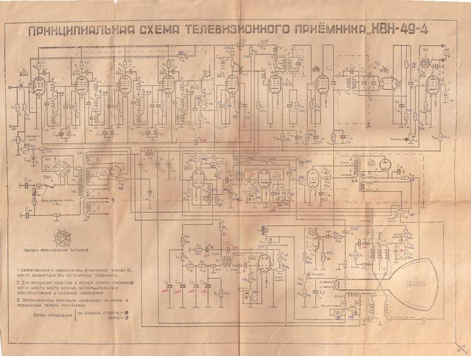Keywords: КВН-49-4.jpg П инципиальная схема телевизионного п иёмника КВ -49-4 Schematic diagram of Russian vacuum tube b/w television receiver КВ -49-4 Схема на бумаге paper schematic <br> Transferred from ru wikipedia to Commons and converted original PNG file invalid MIME type data to JPG with smaller file size by User Wdwd 1959 Схема на бумаге - paper schematic <br> 2010 03 25 scan я <br> Original uploader was Hellflame at ru wikipedia Released into the public domain by the author ru wikipedia Hellflame page is/was here All following user names in the following version history refer to ru wikipedia 2010-03-25 20 08 Hellflame 5052×3820× 11399479 bytes <nowiki>пе еп авка 2</nowiki> 2010-03-25 19 54 Hellflame 5052×3820× 30533610 bytes <nowiki>пе еп авка</nowiki> 2010-03-25 19 50 Hellflame 5052×3820× 30533610 bytes <nowiki> Изоб ажение Описание П инципиальная схема телевизионного п иёмника КВ -49-4 Источник Схема на бумаге В емя создания 1959-2010 А�</nowiki> КВ -49 Vacuum tube circuits Television receivers |