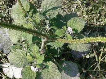 | Keywords: தேள் கொடுக்கு4.jpg en Botanical name - Heliotropium indicum Common name s - Indian heliotrope ; Scorpion weed Tamil name THELKOTUKKU scorpion sting Nativity India Root is a traditional medicine for cough ; Root extract induces sex hormone ;Leaf-tea cures measles ;Plant has anti cancer and anti tumour activities ;Tribal people use this plant for scorpion bites;Leaf juice is a medicine for Conjunctivity In snapshot - View from top ; See the white assembly of tiny flowers - just like the tip of scorpion's tail ta Botanical name - Cressa cretica Common name Littoral bind weed தேள் கொடுக்கு களைச் செடியாகக் கருதப்பட்டாலும் நல்ல மூலிகை இது ; செடியைப்பார்த்தாலே ஏன் தேள்கொடுக்கு என்ற பெயர் வந்தது என்பது விளங்கும் வேர்க்கசாயம் பாலுர்ணவுச் சுரப்பிகளை ஊக்குவிக்கும் ; புற்றுநோய் த ர்க்கும் குணம் இச் செடிக்கு உண்டு ;இலையிலிருந்து தயாரிக்கப்படும் ட மணல்வாரி அம்மைக்கு மருந்தாகும்; இலைச் சாறு கண்நோய் மருந்து; தேள்கடி மருந்தாக இம் மூலிகையை ஆதிவாசிகள் பயன்படுத்துகிறார்கள் படம் - மேலிருந்து காணும் தோற்றம் - தேள் கொடுக்கின் நுனி போலப் பூக்களின் கூட்டம் உள்ளதைப் பாருங்கள் ml തേക്കട Thakkeda hi हथसुरा Hathsura own Dr S Soundarapandian 2014-02-16 Own field work Shot in Chennai Tamilnadu India 4 5 kms off sea-shore ; Latitude-13°02'20 N ; Longitude- 80°13'43 E ; Elevation from sea level - 6 7 m Heliotropium indicum Cc-zero |