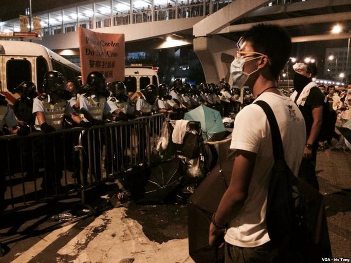 | Keywords: 香港示威者與警方對峙持續 (4).jpg zh-tw 星 午 12時後,仍 大量示威 聚集 香港政 總部對開的馬路,與戴上防毒 具的防暴警察對峙 2014-09-29 03 20 37 http //www voacantonese com/content/article/2465297 html 湯惠芸 other versions Custom license marker 2014 09 28 PD-USGov-VOA Uploaded with UploadWizard 2014 Hong Kong protests September 28 Police officers of Hong Kong 2014 Hong Kong protests on Harcourt Road |
