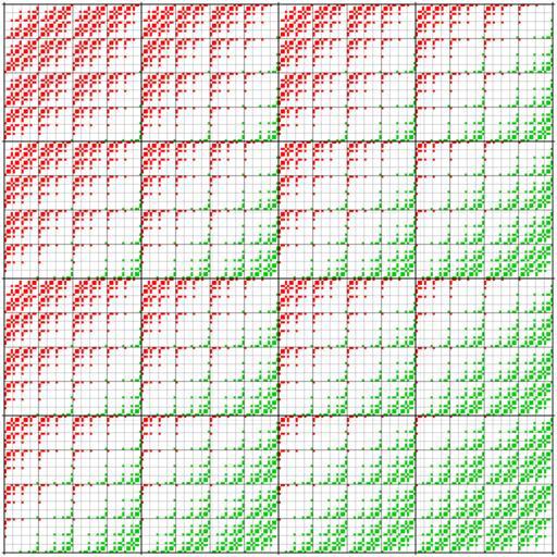 Keywords: 4-ary Boolean functions; matrix weight 5, 11.svg 4-ary Boolean functions with Hamming weight 5 red and 11 green in a 256×256 matrix organized like a 16-cube Hasse diagram Inkscape-hand a -Boolean Bin2svg own 2012 Mate2code 4-ary Boolean functions; matrix weight |